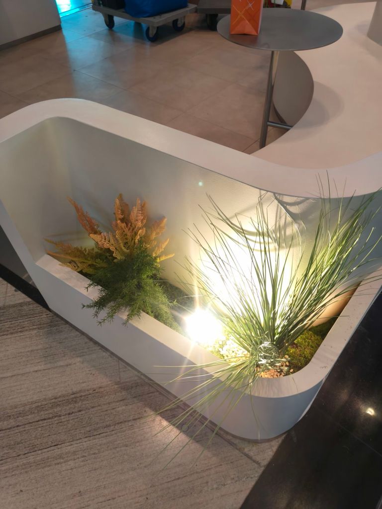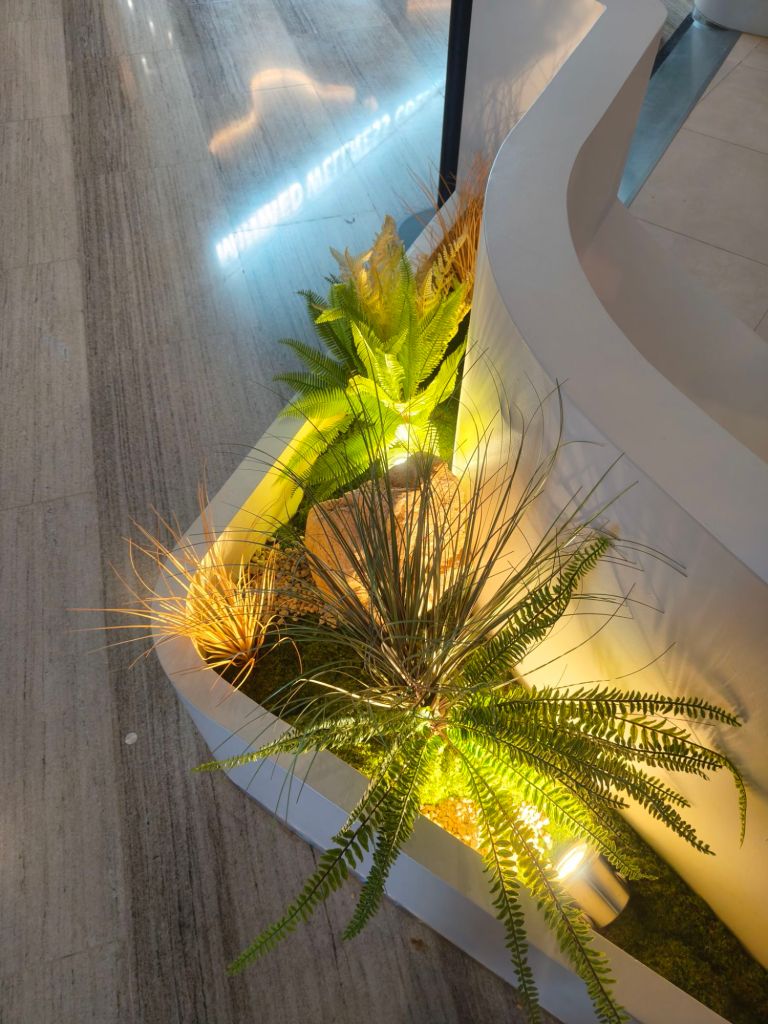 This installation was a little different from my usual floral setups – it involved bringing a touch of green into a modern retail space. The concept was to create something that felt fresh, natural, and inviting, while staying practical for a busy environment like Jewel.